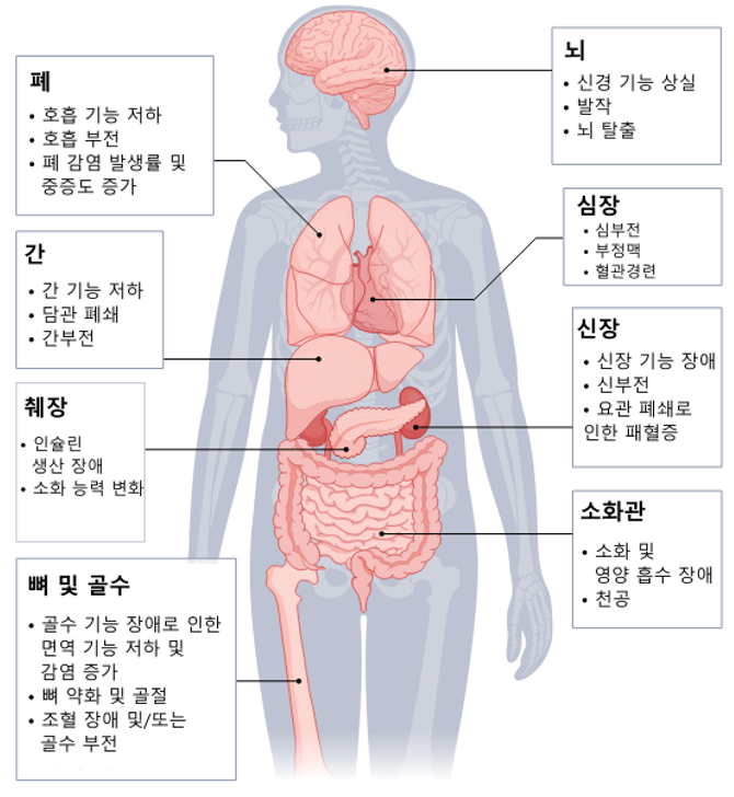 - 악액질 (체중 감소와 근육 소모 현상)과 에너지 불균형